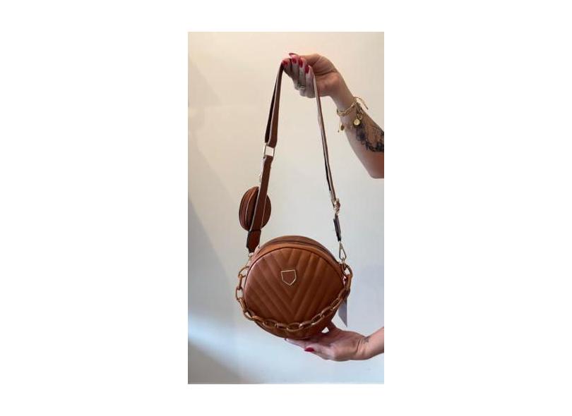 O menor preço encontrado no Brasil para Bolsa Feminina Com Alça de Mão e Ombro Reajustável e Com Bolso Externo + Detalhe em Corrente (Caramelo) atualmente é R$ 69,90.