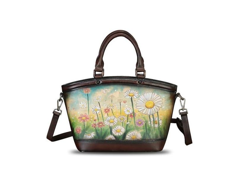 Bolsa feminina de couro genuíno pintada à mão bolsa de ombro feita à mão bolsa transversal de trabalho bolsa casual, Padrão 1, Medium