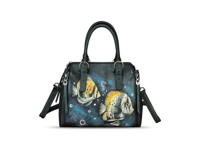 Bolsa feminina de couro genuíno pintada à mão com alça superior, bolsa tiracolo feita à mão, Padrão 10, Medium