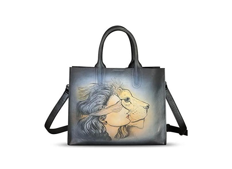 Bolsa feminina de couro genuíno pintada à mão com alça superior, bolsa tiracolo feita à mão, Padrão 3, Medium