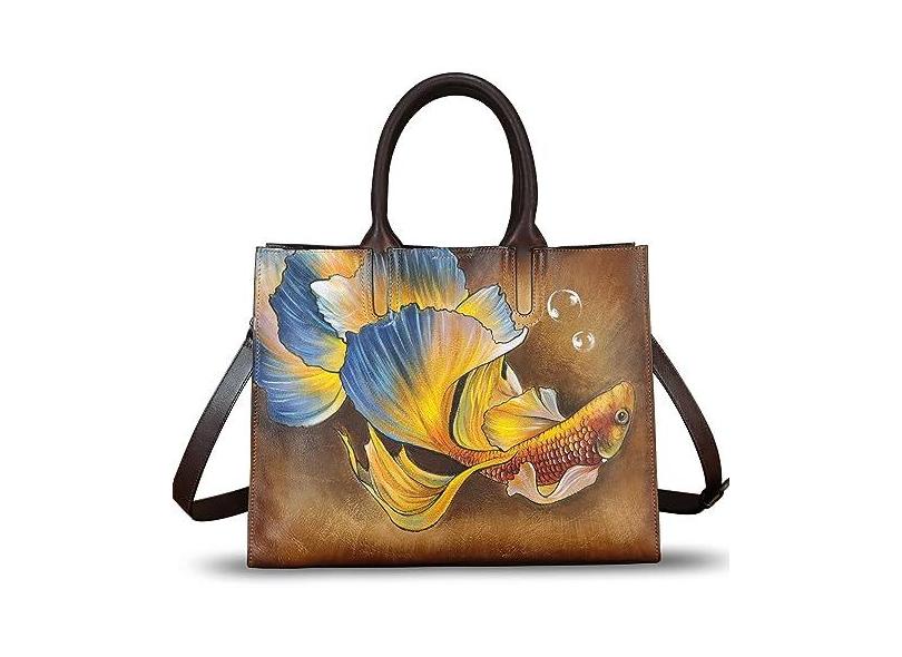 Bolsa feminina de couro genuíno pintada à mão com alça superior, bolsa tiracolo feita à mão, Padrão 6, Medium