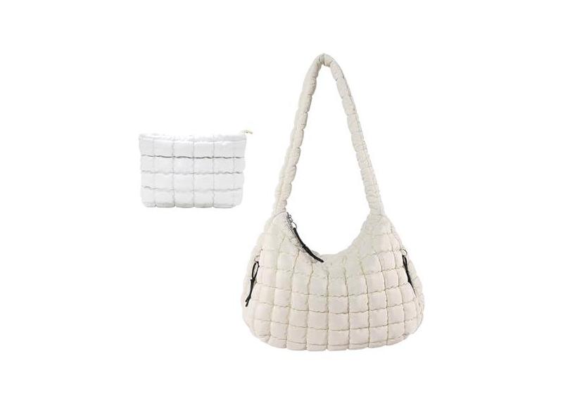 Bolsa feminina grande, acolchoada, leve, acolchoada para academia, bolsa tiracolo macia e fofa, bolsa Hobo (bege), Bege