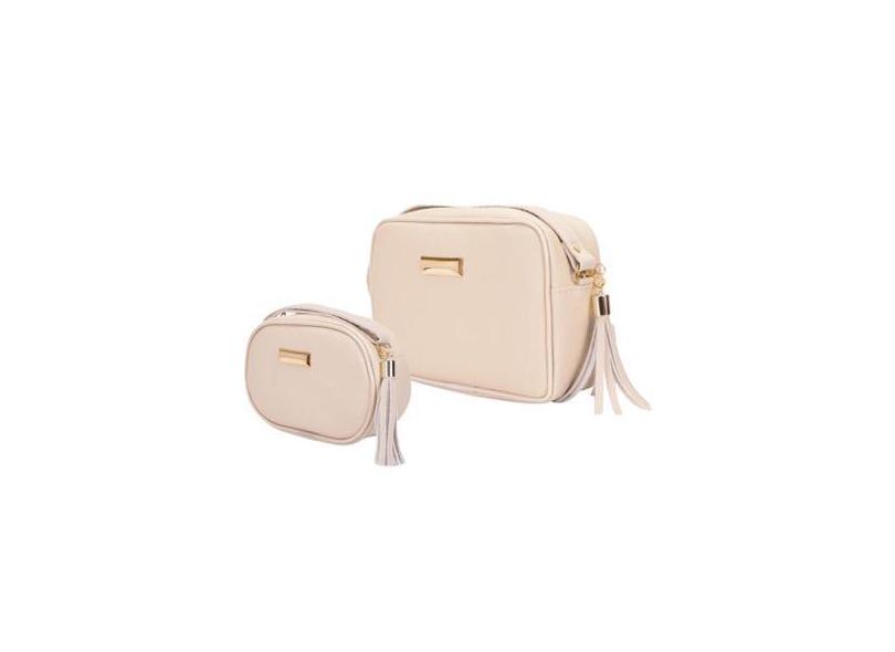O menor preço encontrado no Brasil para Bolsa Feminina Kit 2 Peças Quadrada Média Bege Transversal + Oval Pequ atualmente é R$ 75,91.