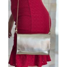 Bolsa Feminina Metalizada Lisa Barato Alça Corrente Removivel De Ombro