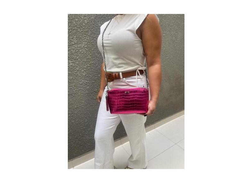 Bolsa Feminina Transversal Croco Festa Balada Alça Corrente Reforçada