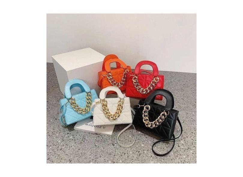 Bolsa Feminina Transversal Quadrada Com Corrente E 2 Alças - Tem Tudo