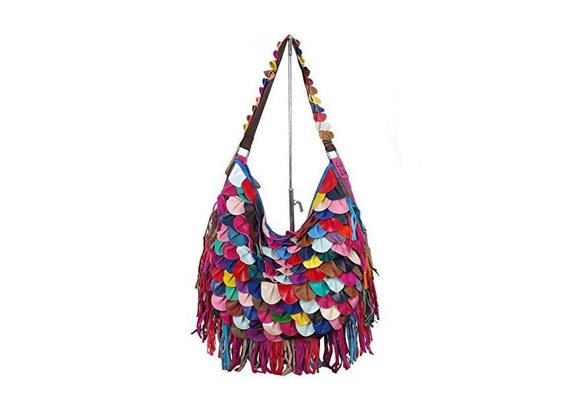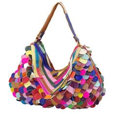 O menor preço encontrado no Brasil para Bolsa Hobo Feminina de Pele de Ovelha Multicolorida Patchwork Bolsa de Ombro com Folha, Multicolorido., Large atualmente é R$ 487,56.