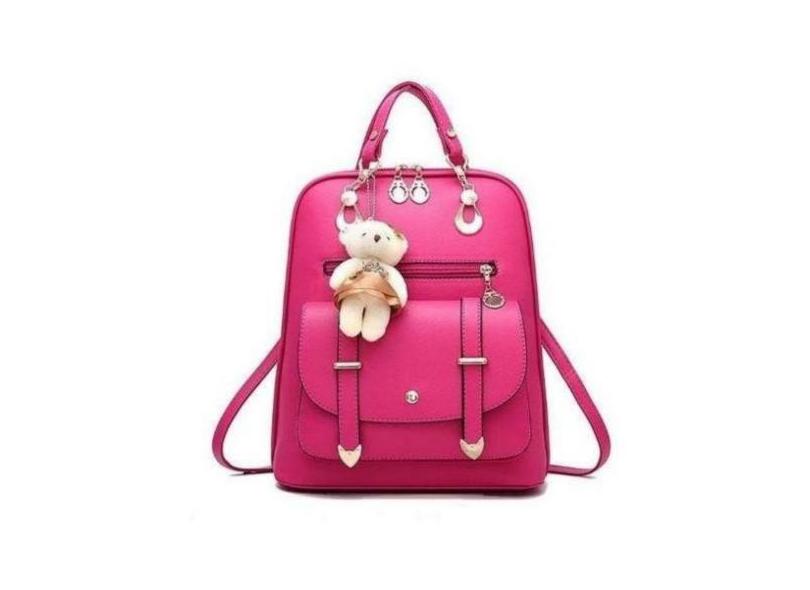 Bolsa Mochila Feminina Com Chaveiro Urso Couro Casual BL1201 - Kinglee