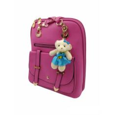 Bolsa Mochila Feminina material sintético Com Chaveiro Urso - KINGLEEN