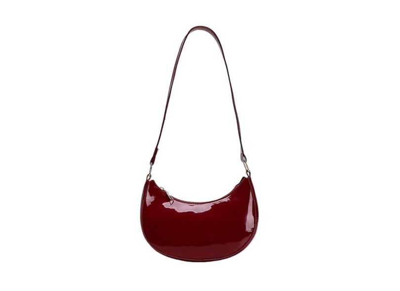 Bolsa noturna de couro envernizado brilhante Mini Hobos axila bolsa de ombro, Vinho tinto