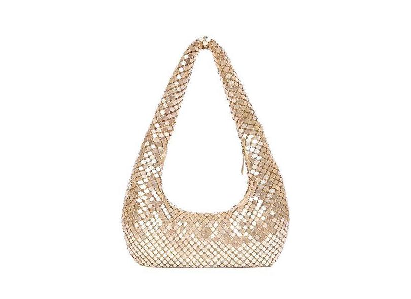 Bolsa noturna de malha metálica cintilante com alça de ombro feminina brilhante Hobo metálica, Prata