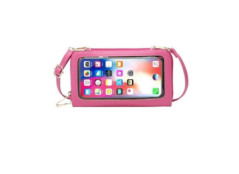 Bolsa para celular transparente com tela sensível ao toque transversal feminina com bloqueio de RFID pequena bolsa de ombro mini, rosa