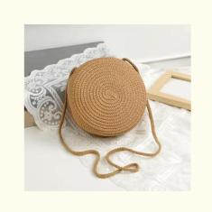 Bolsa Pequena Palha Sintética Redonda Alça Corda - Multimarcas, Bege