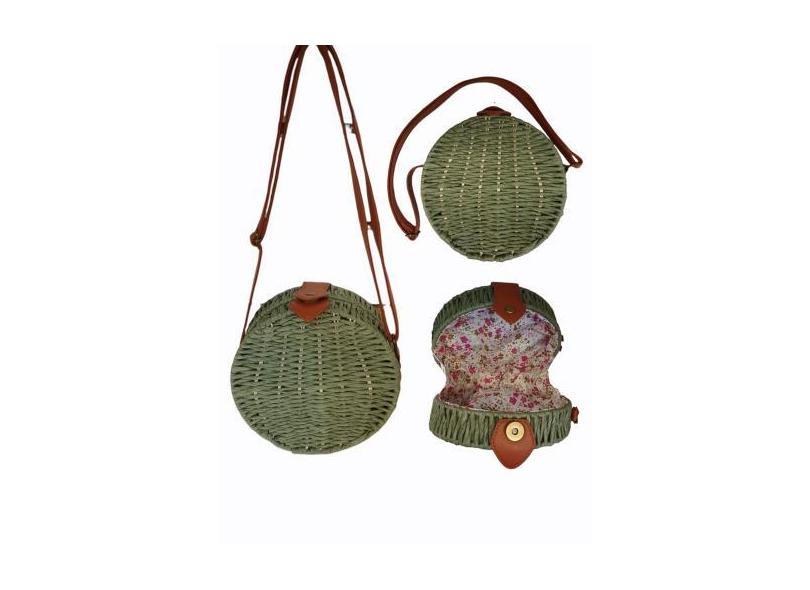 Bolsa Redonda Palha Tiracolo com Alça de Couro Casual Moda Praia BL-19