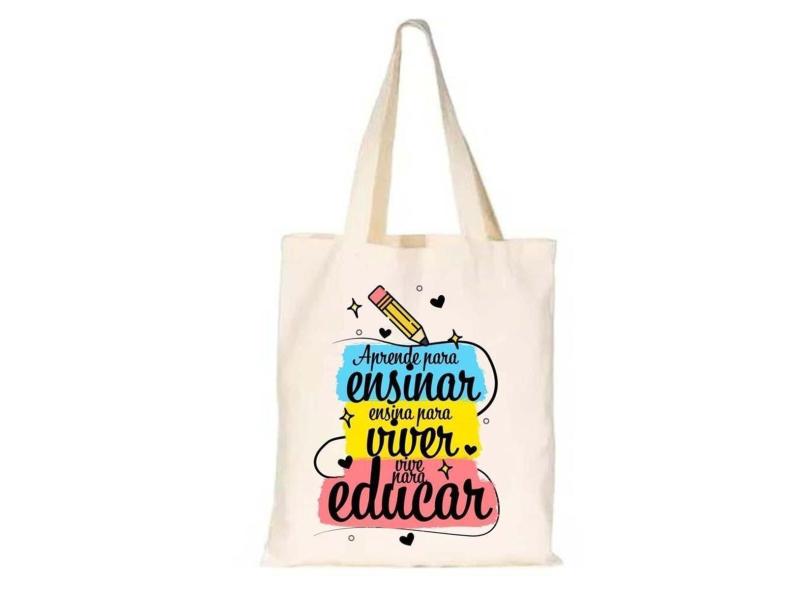 Bolsa Sacola Ecobag Professor Escola Algodao Alça Fixa Confortavel Cabe Notebook-Feminino