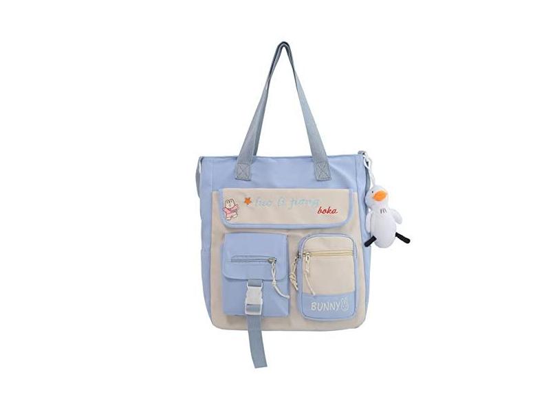 Bolsa tiracolo Kawaii com acessórios Kawaii para meninas, linda bolsa de ombro à prova d'água para laptop, bolsa escolar para estudantes, Azul