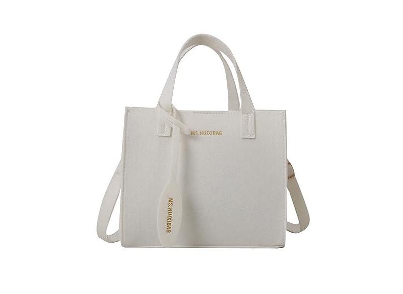 Bolsa tiracolo pequena de tecido de feltro, bolsa de trabalho, bolsa de ombro com alça ajustável, Branco