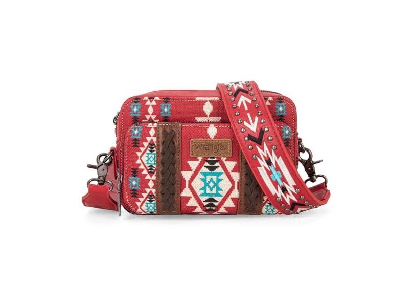 Bolsa tiracolo Wrangler feminina Boho Aztec pequena com vários bolsos, Angel Diamond Borgonha