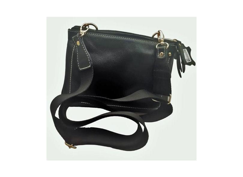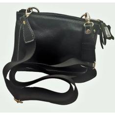 Bolsa Transversal De Couro Preta Feminina - Mobelli Cosméticos