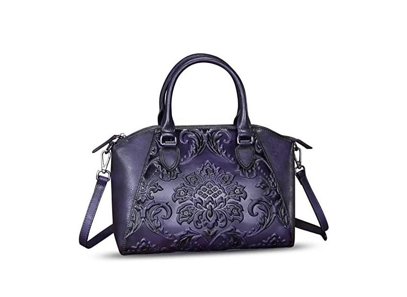 Bolsas e bolsas de couro genuíno para mulheres vintage em relevo bolsas de couro com alça transversal, Roxa