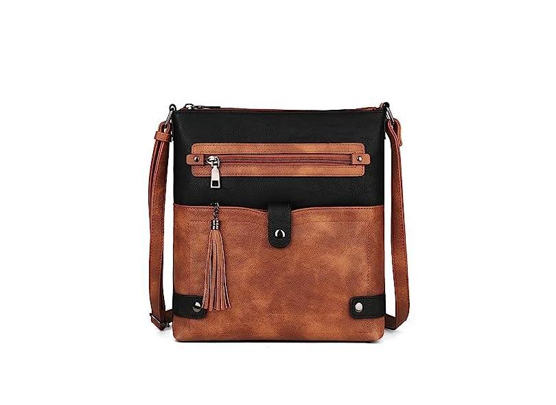 FADEON Bolsas transversais para mulheres Bolsa transversal, bolsas de viagem de designer com vários bolsos e borla (Preto Castanho)
