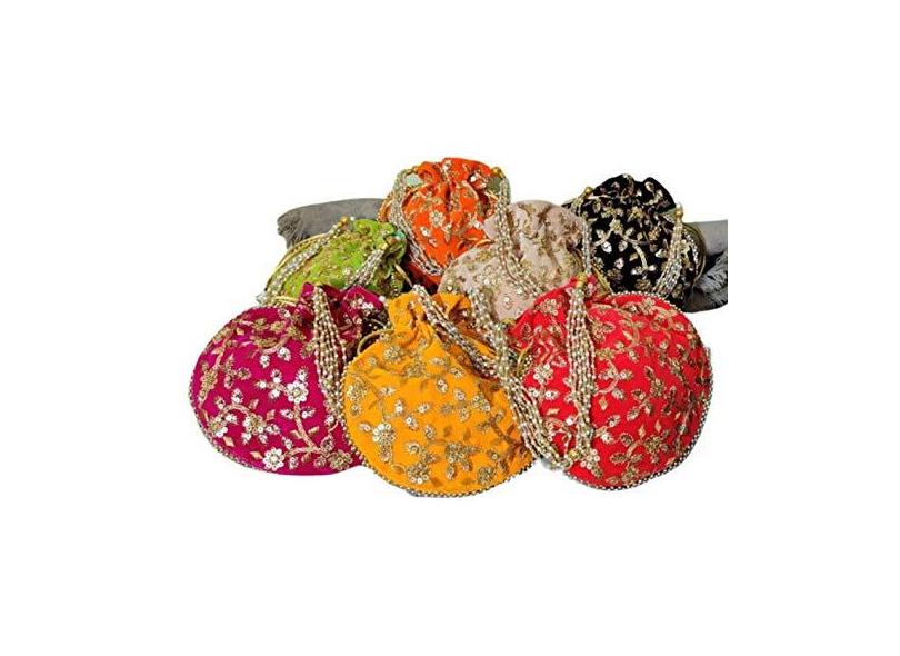 India Gift Hub Bolsa feminina indiana bordada de veludo com cordão | Bolsa indiana Potli, Multicor, Small