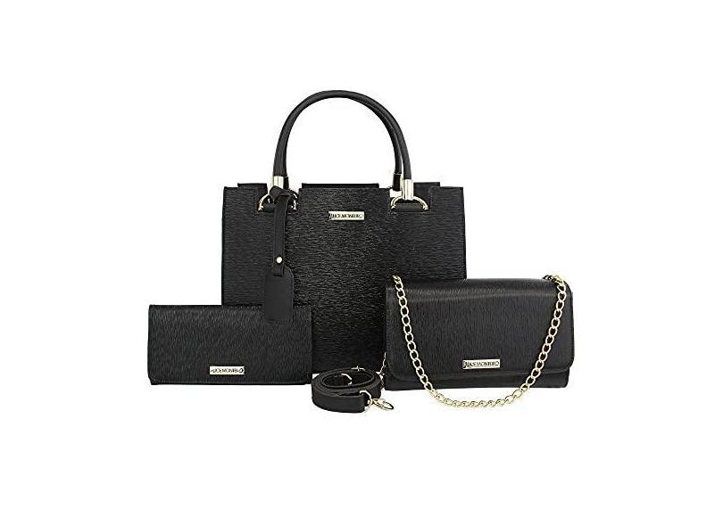 Kit Bolsa Feminina Castelo + Clutch Alça de Corrente + Carteira Alice Monteiro Cor:Preto;Tamanho:Único;Gênero:Feminino
