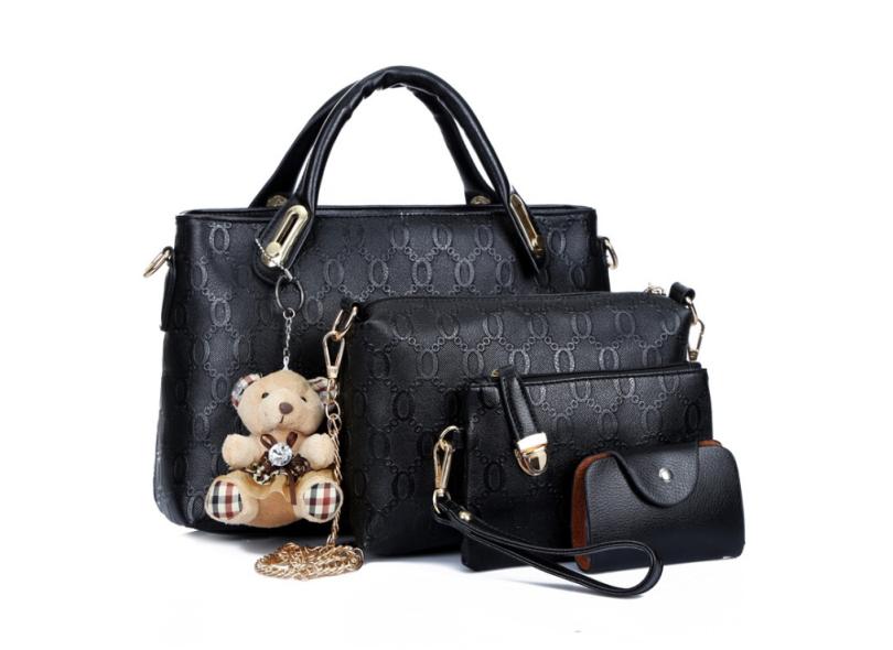 Kit Conjunto Bolsa Feminina 4 Peças Couro Carteira Luxo Cor