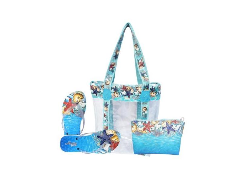 Kit Feminino Praia Transparente Fundo Do Mar Bolsa Chinelo Necessaire Magicc Bolsas KIT-217
