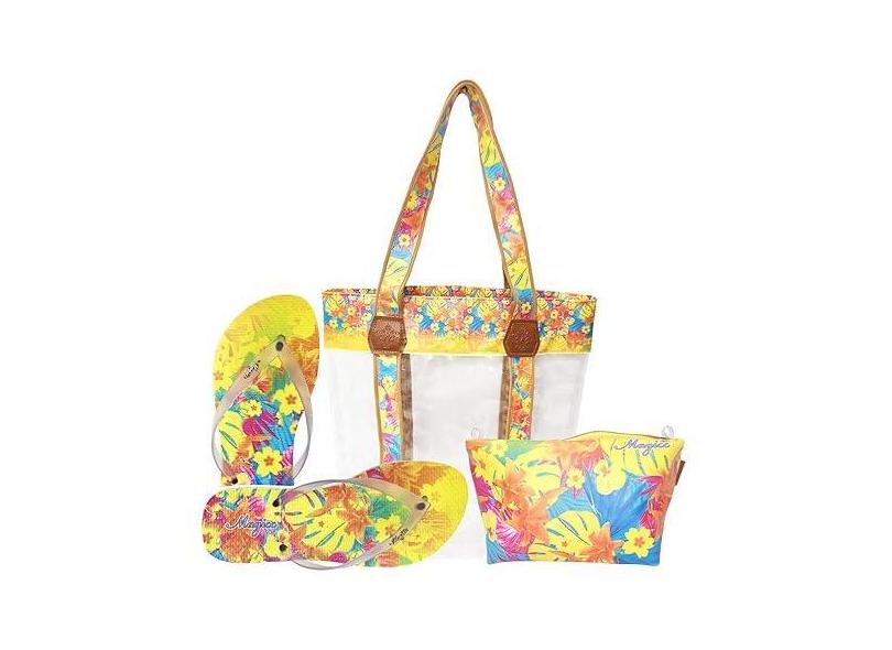 Kit Feminino Praia Tropical Transparente Bolsa Chinelo Necessaire Magicc Bolsas KIT-216