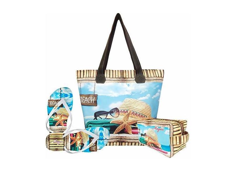 O menor preço encontrado no Brasil para Kit Praia Feminino Chapéu e Estrela-do-Mar com Bolsa, Necessaire e Chinelo, Magicc atualmente é R$ 137,90.