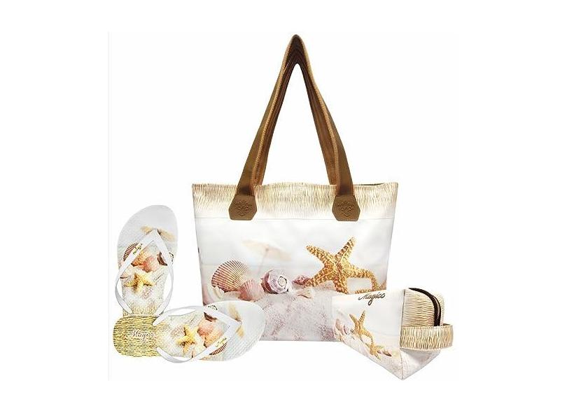 Kit Praia Feminino Estrela-do-Mar Areia Bolsa, Necessaire e Chinelo Magicc Bolsas KIT-029