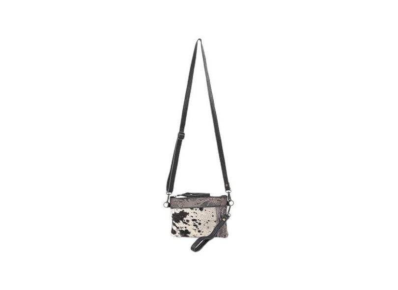 Merbaa Bolsa feminina de couro bovino natural com alça ajustável destacável bolsa de couro massageador bolsa tiracolo, Preto, Medium