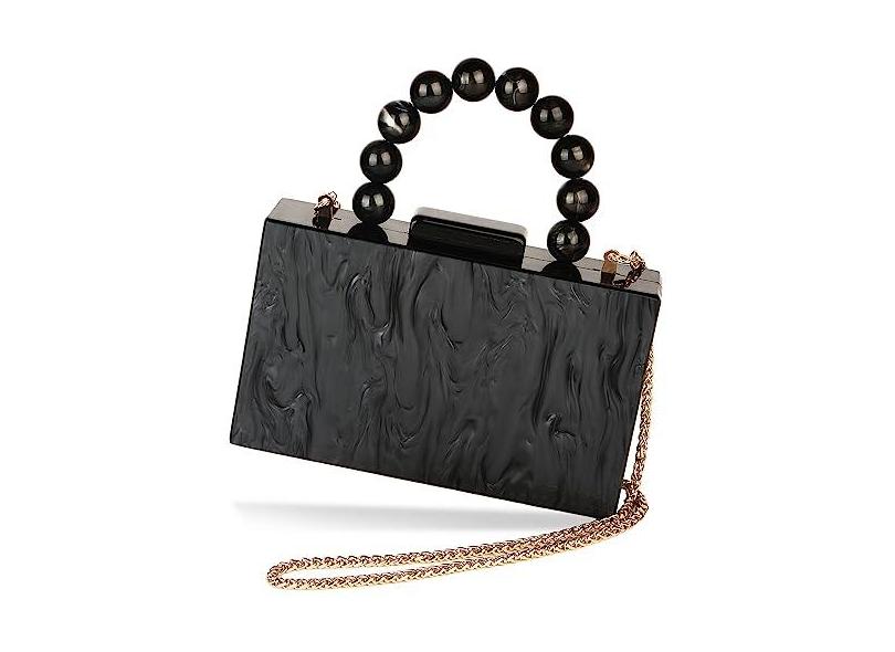 NUSTTAL Bolsa feminina de acrílico, bolsa de ombro marmorizada para festa de casamento, coquetel, formatura, Preto, Small