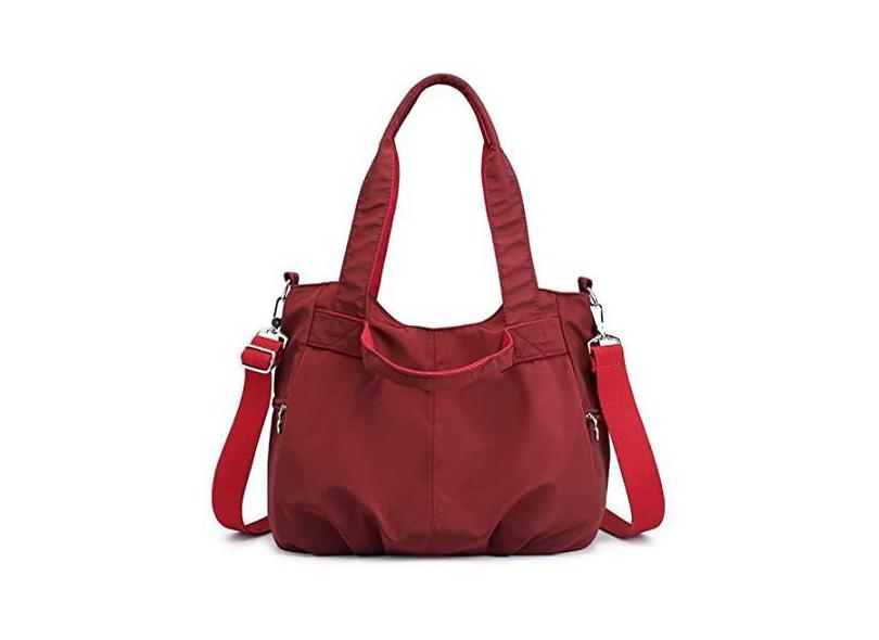 POPOTI Bolsa de ombro feminina, bolsa tiracolo Hobos Nylon impermeável com bolsos, Vermelho, One_Size