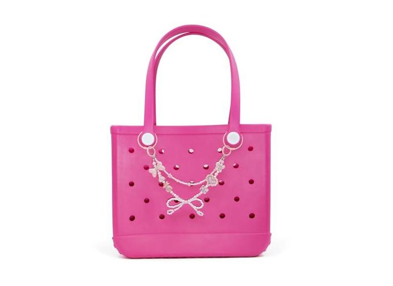 QTKJ Acessórios de gravata borboleta para bolsa Bogg, corrente de 2 camadas para bolsa Bogg, decoração de contas delicadas rosa para bolsa Bogg, bolsa de praia de borracha, bolsa de ombro transversal,
