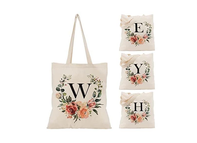 Sacola feminina com inicial floral – Bolsa de lona personalizada para presentes de dama de honra – Bolsas com monograma para professores de estética, Natural