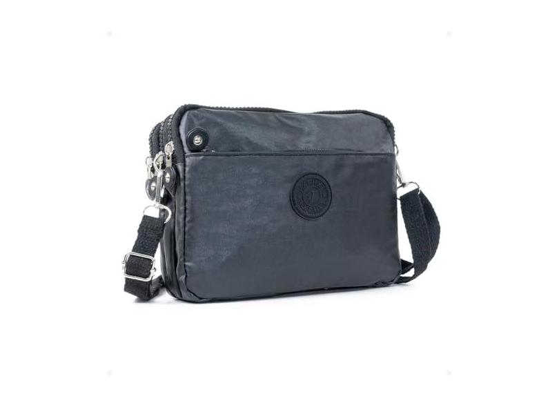 Shoulder Bag Bolsa Transversal Alça De Ombro Feminina Necessaire Pochete Moderna Viagem Resistente À Água Reforçada Tira Colo 1,6 Litros, Preto Metálico