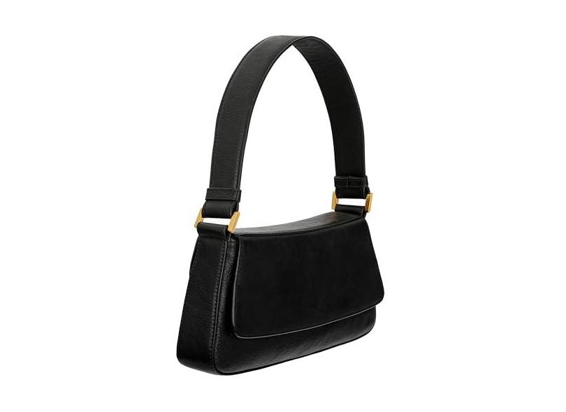 Time Resistance Bolsa de couro - Bolsa de couro de flor integral para mulheres - Bolsa de ombro feita na Itália, Preto