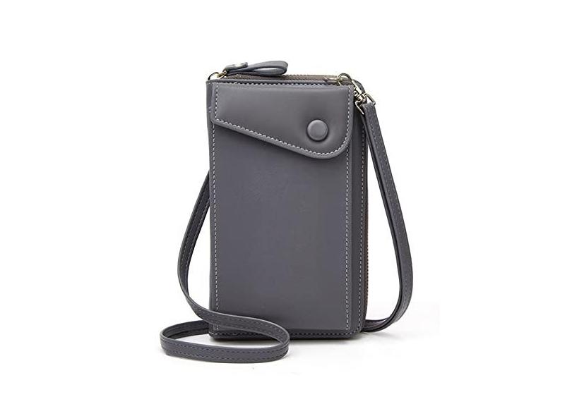 TIYETA Bolsas pequenas para celular para mulheres Bolsa de couro para ombro Carteira com compartimentos para cartão de crédito,Gray