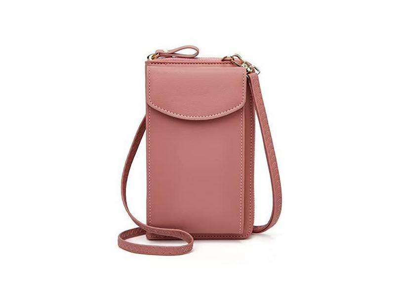 TIYETA Bolsas pequenas para celular para mulheres Bolsa de couro para ombro Carteira com compartimentos para cartão de crédito,Pink