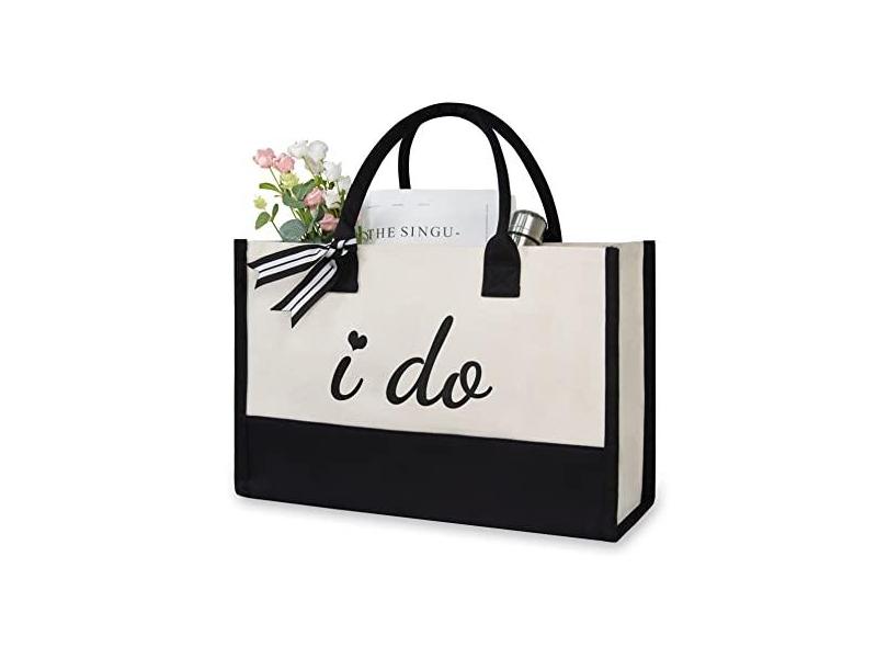 TOPDesign Sacola de lona, presentes de chá de panela, presentes para noiva, casamento, despedida de solteira, bolsa de ombro, Preto e branco, 17" x 11.8" x 7.8"