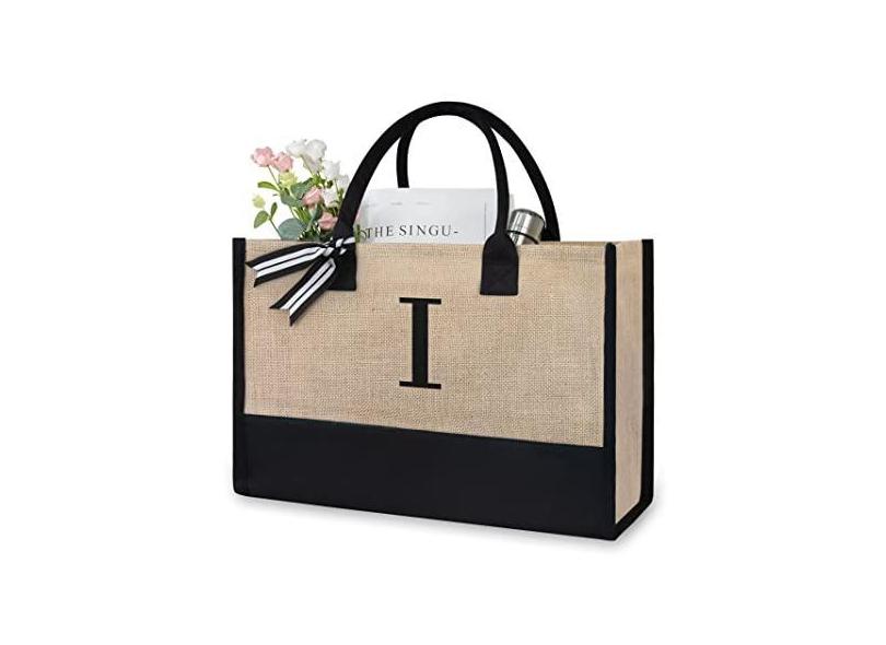 TOPDesign Sacola inicial de jutalona, bolsa de presente personalizada, adequada para casamento, aniversário, praia, feriado, é um ótimo presente para mulheres, mães, professores, amigas, damas de
