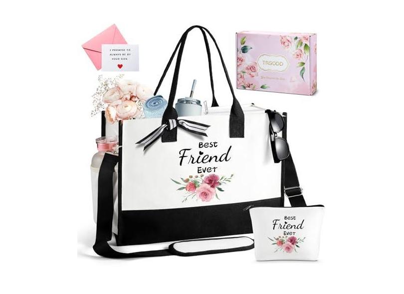 TRSODD Presentes de aniversário para mulheres, amizade, melhores amigas, presentes de aniversário para mulheres, sacola para mulheres, personalizados, bolsa de praia com bolsa de