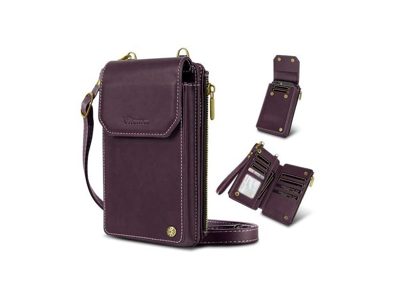 Vitomas Bolsa transversal para celular feminina – Bolsa elegante com compartimentos para cartão com bloqueio de RFID, compartimentos com zíper para dinheiro, moedas e chaves – Design versátil para uso