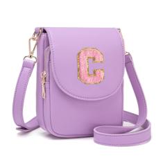 Viverte Bolsa transversal para meninas adolescentes, pequena, inicial, celular, bolsa de couro com compartimento triplo, Lavanda