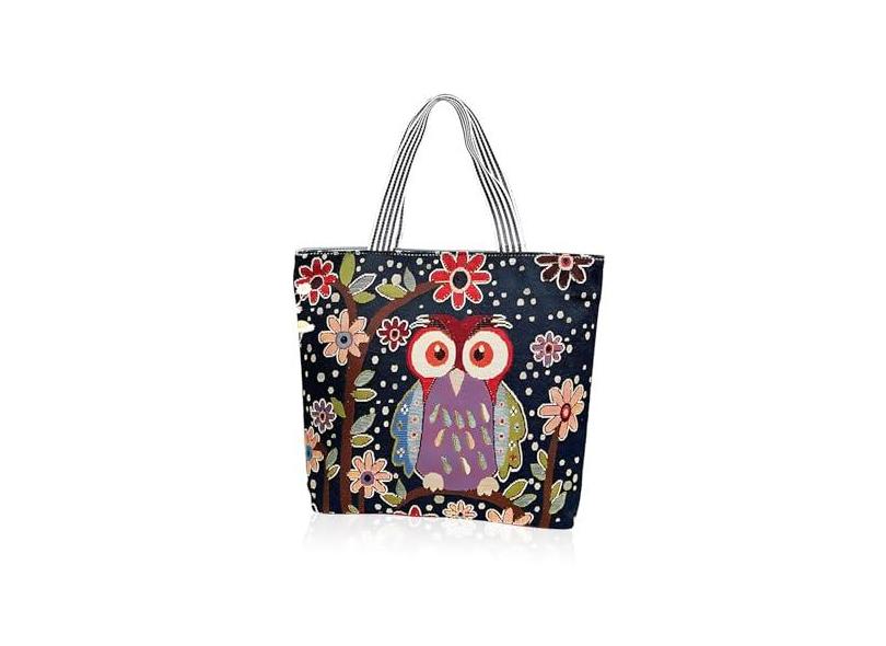 WisePoint Sacola estética, sacola de lona com zíper e bolso interno, bolsa de ombro de lona fofa para mulheres, Preto
