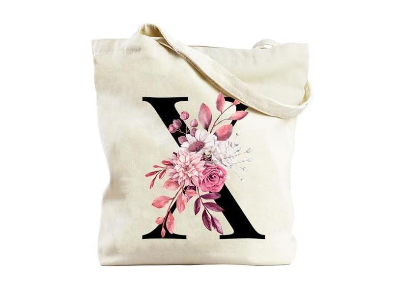 Xasopffe Sacolas iniciais para mulheres, bolsa com monograma para professora enfermeira, presentes personalizados para casamento, aniversário, Natal, Bege, One Size