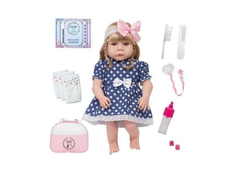 Bebe Boneca Reborn Abigail Loira Vestido Bolinha Completa - Cegonha Re