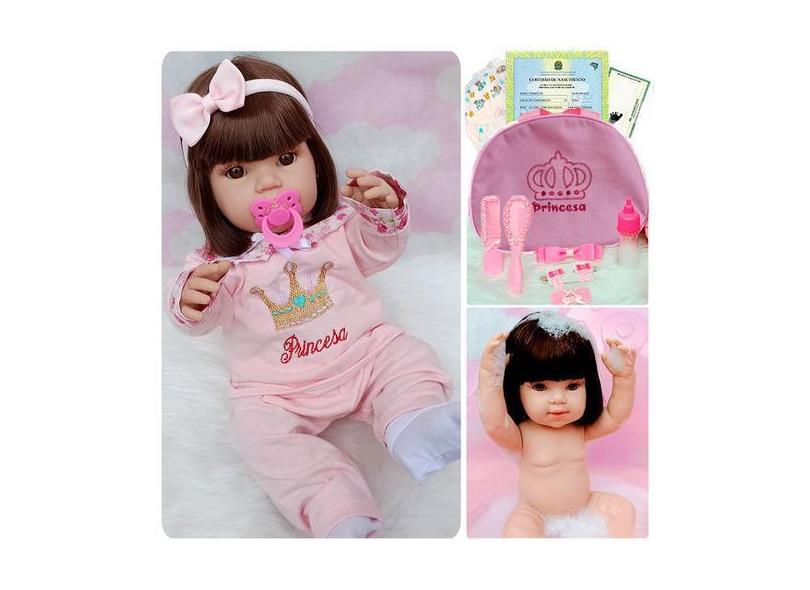 Bebê Reborn Baby Boneca Cabelos Castanhos + Enxoval Completo - Mamãe R
